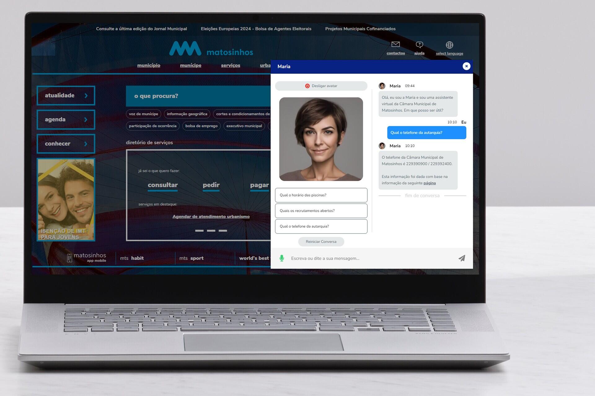 A primeira assistente virtual com Inteligência Artificial em sites autárquicos.