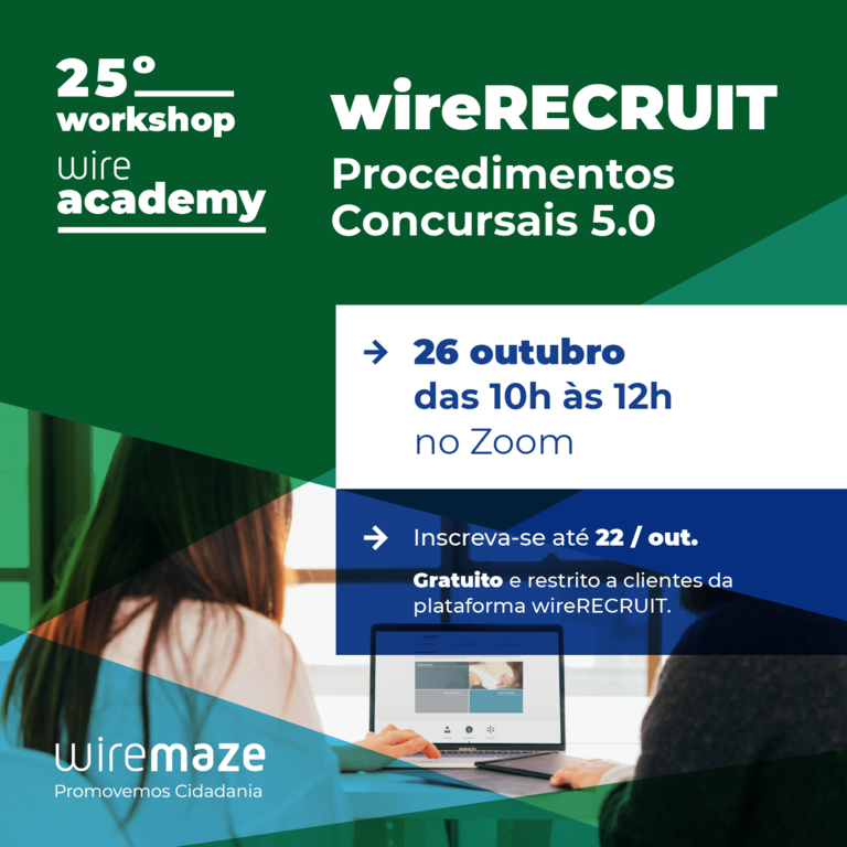 Sabemos que a gestão de procedimentos concursais não é tarefa fácil. Neste evento vai ter a oportunidade de saber as novas boas práticas do uso de soluções informáticas, nomeadamente do wireRECRUIT, em prol de otimização de trabalho e melhoria dos processos.
